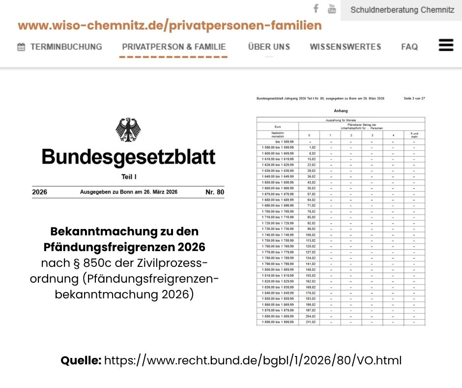 Wie viel Geld du genau behalten darfst, richtet sich nach deinem Verdienst und nach deiner familiären Situation. Vor allem spielt eine Rolle, ob du für Kinder oder Partner Unterhalt zahlen musst. Den offiziellen Text mit allen Paragrafen kannst du direkt in der Bekanntmachung zu den Pfändungsfreigrenzen 2026 nachlesen.